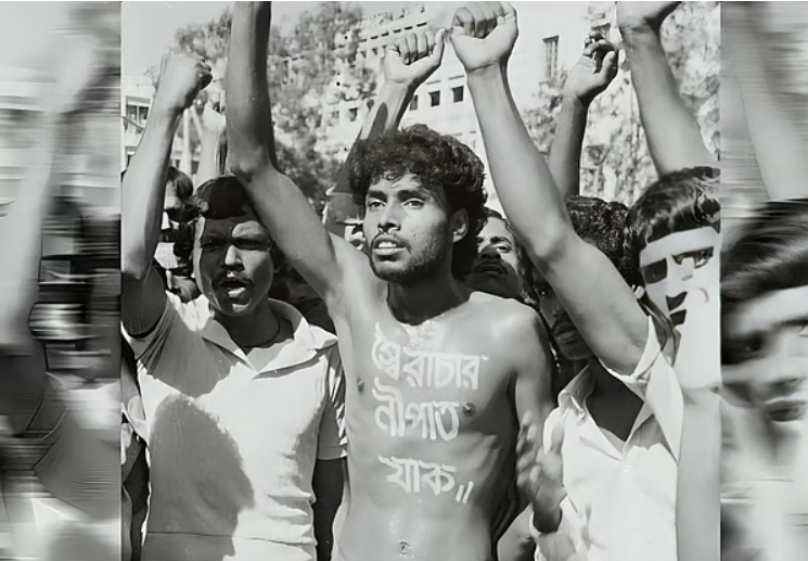 সামরিক আইন জারির মাধ্যমে ১৯৮২ সালের ২৪ মার্চ রাষ্ট্রক্ষমতা দখল করেছিলেন তৎকালীন সেনাপ্রধান এরশাদ। আওয়ামী লীগ ও বিএনপির নেতৃত্বাধীন দুই জোটসহ বামপন্থী রাজনৈতিক দলগুলোর টানা আন্দোলনের মুখে এইচ এম এরশাদ ক্ষমতা ছেড়ে দিতে বাধ্য হন। এরশাদবিরোধী আন্দোলনে ডা. শামসুল আলম খান মিলন, নূর হোসেনসহ অনেককে প্রাণ দিতে হয়েছে।